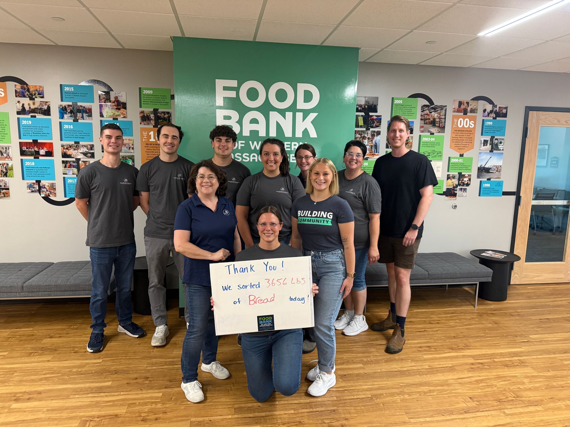 The team collaboratively sorted, organized, and packaged over 3,500 pounds of bread which was distributed to various food pantries and organizations in the surrounding community. Together, we end hunger with the Food Bank of Western Massachusetts.
