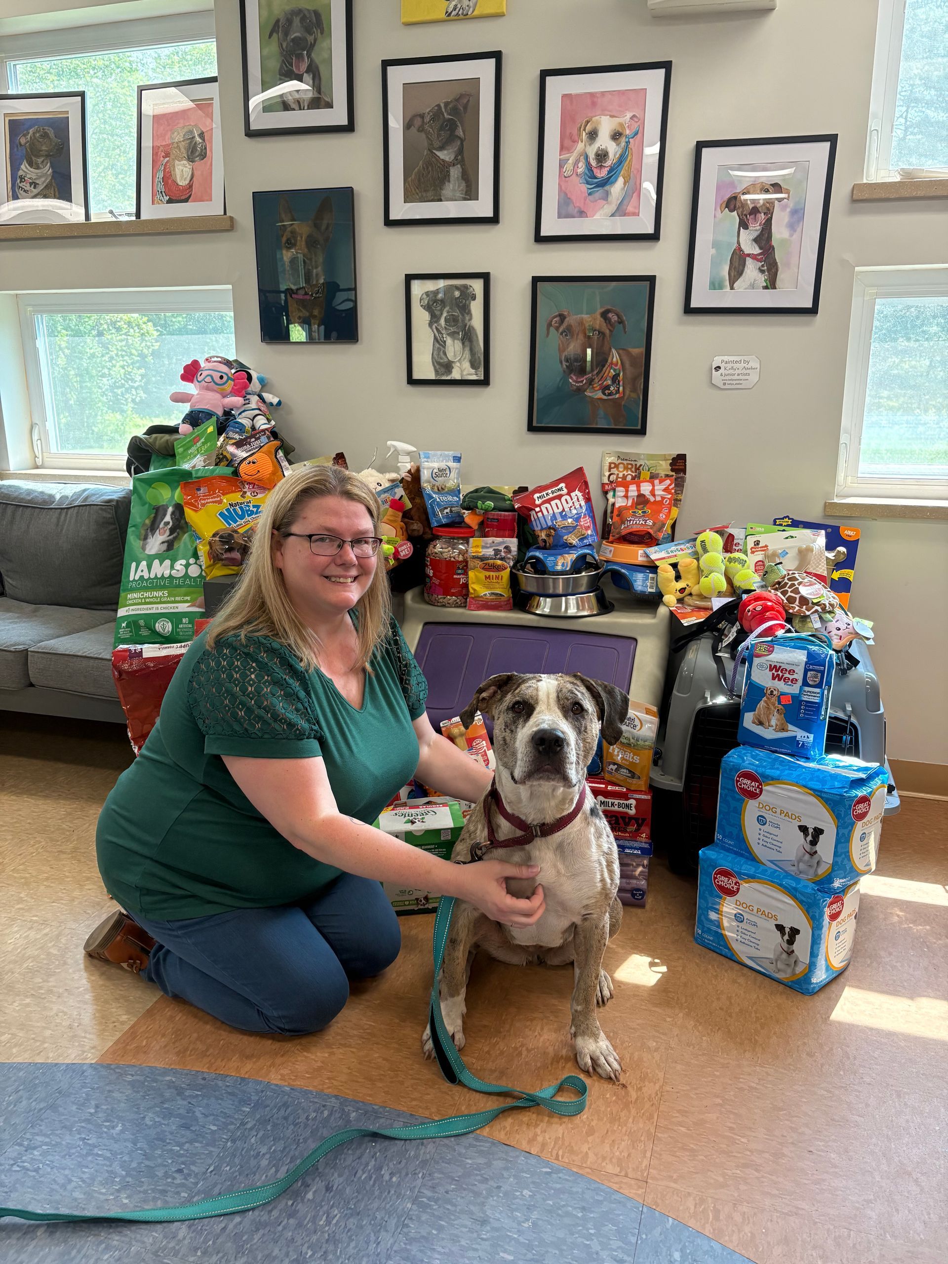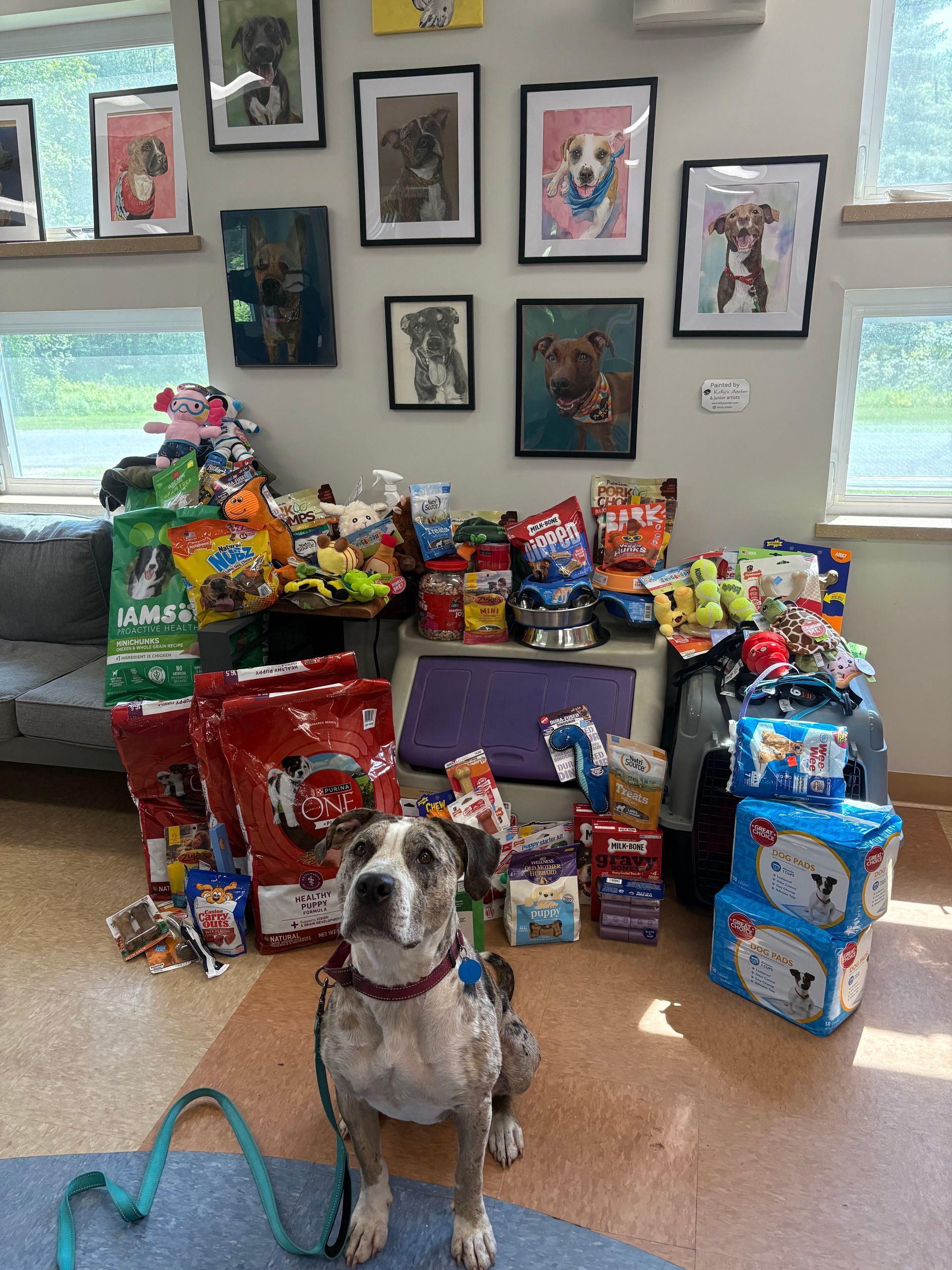 The dog featured in the photo at the donation drop is named Rose. She is a 2-year old sweetheart looking for her forever home. Her adoption details can be found here.
